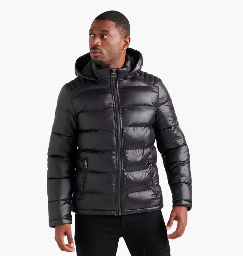 A type of outerwear that provides warmth and insulation during cold weather, especially in winter. It is known for its distinct quilted or 'puffy' appearance, achieved by the layers of insulation material inside the jacket.
