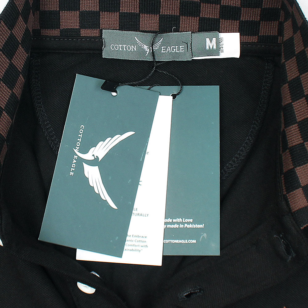 Cotton Eagle Premium Check Collar Polo Shirt (Black)