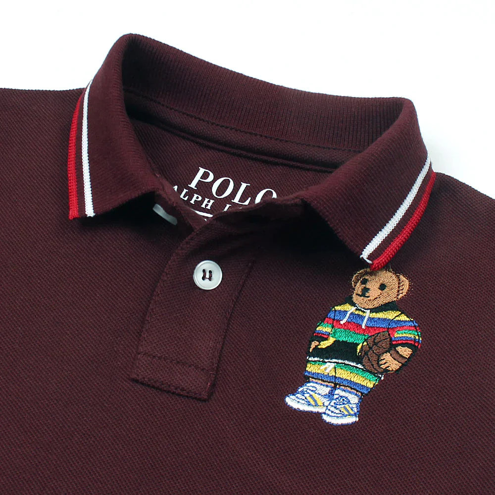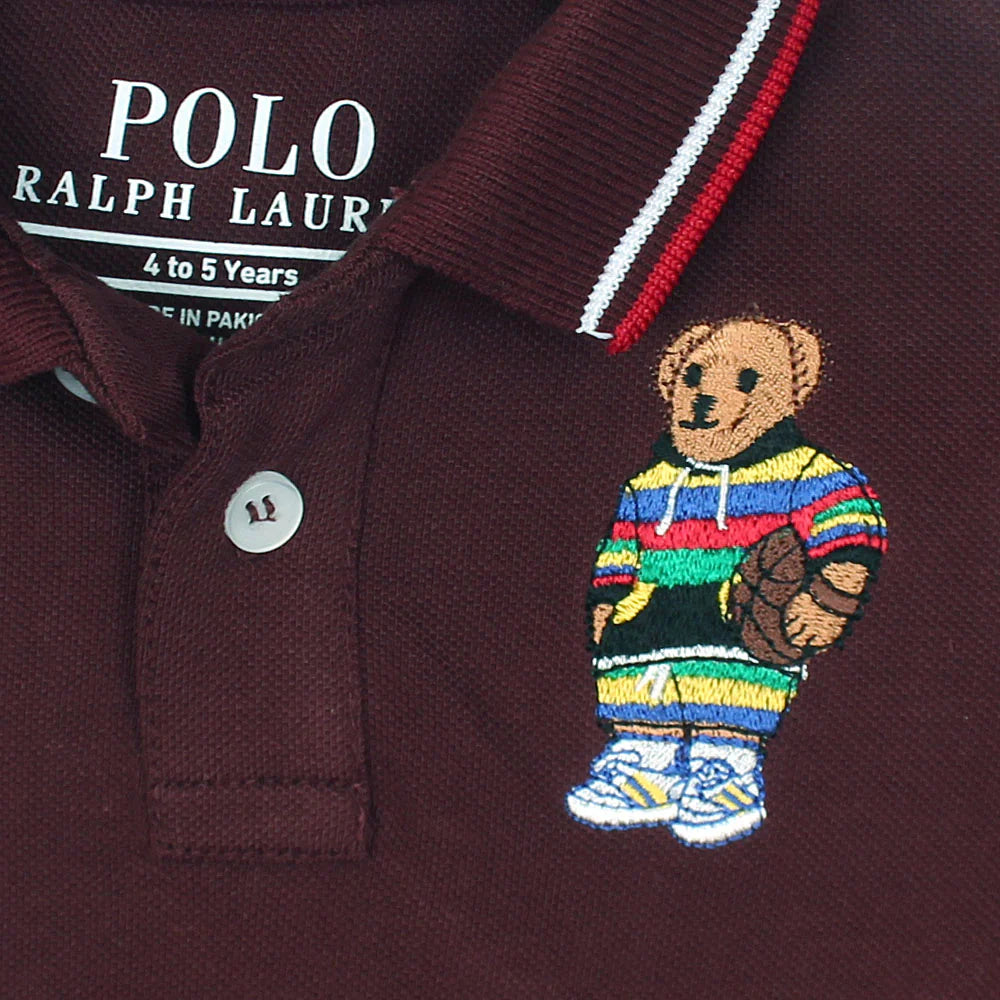 RL Kids Premium Tipping Collar Bear Polo Shirt (Maroon)