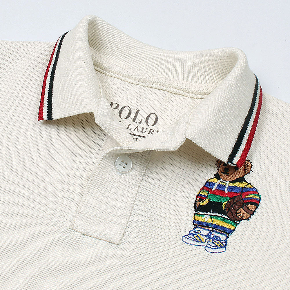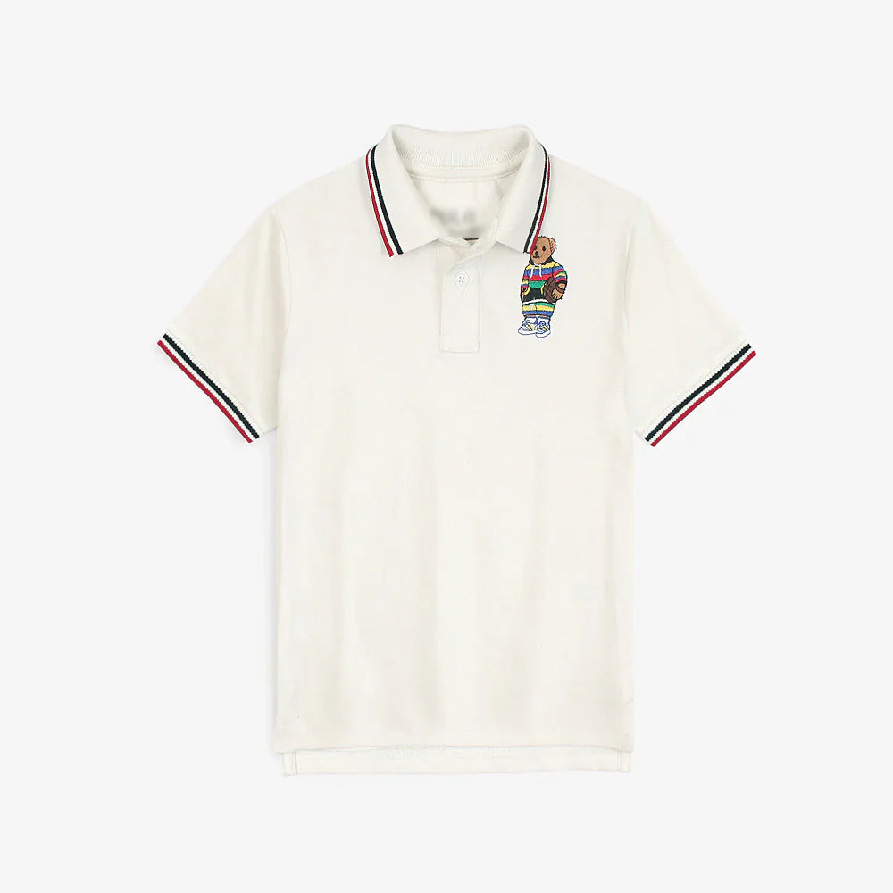 RL Kids Premium Tipping Collar Bear Polo Shirt (White)