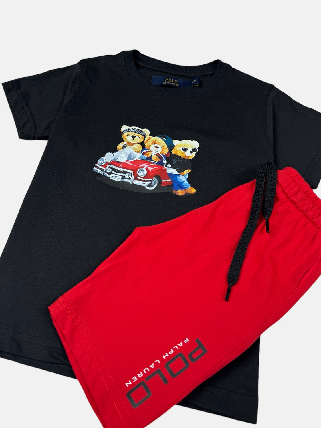 RL Premium 3 Bear Kids Twinset (Black/Red)