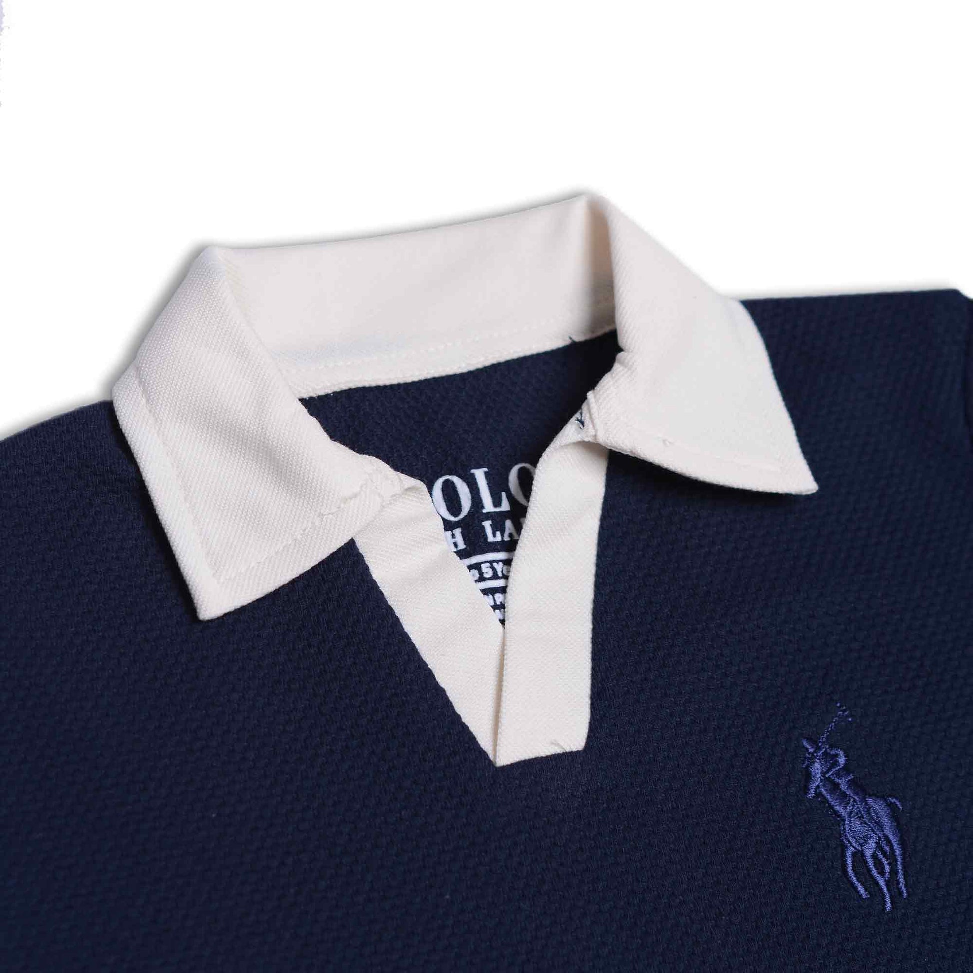 RL PREMIUM KIDS V NECK POLO SHIRT (NAVY BLUE)